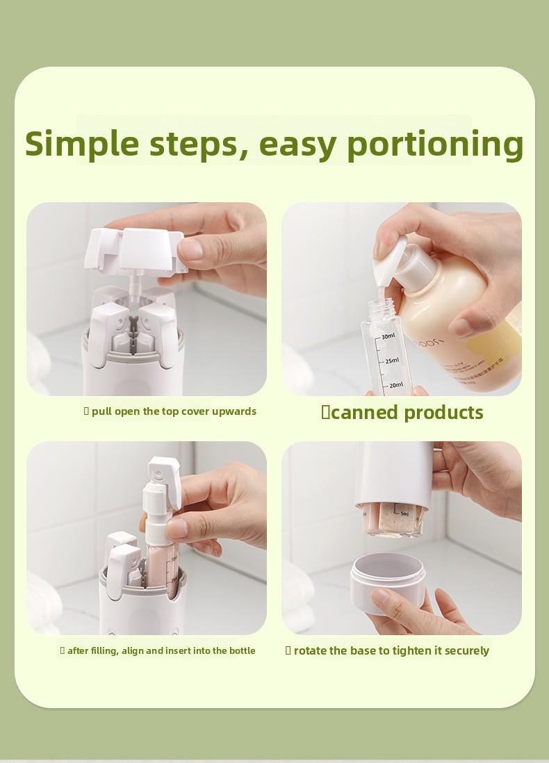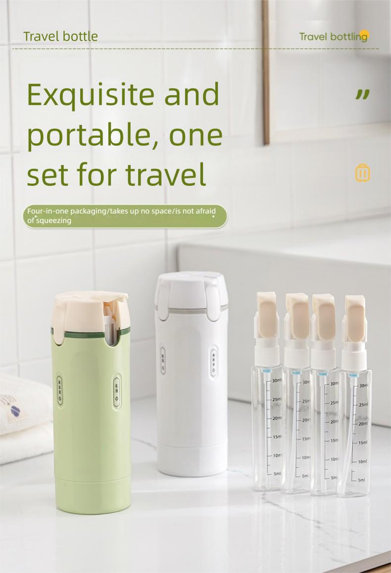 This 4-in-1 travel dispenser bottle is perfect for toiletries. It serves as a portable cosmetic shampoo storage bottle and a lotion bottle. Ideal for travelers who need to carry essentials efficiently. The compact design ensures easy portability, making it a convenient choice for frequent travelers.