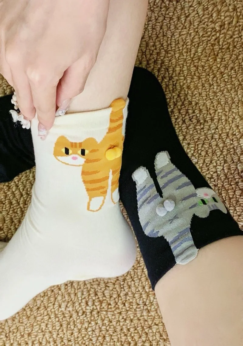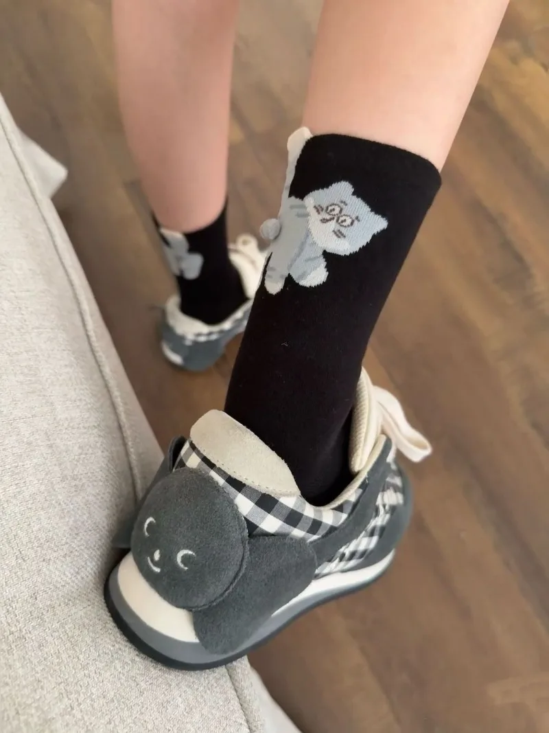 Cartoon Cat Egg Couple Socks Cozy Mid-Calf Cotton Socks for Maternity Warm Winter Cute Present for Christmas Lovers Family Gifts