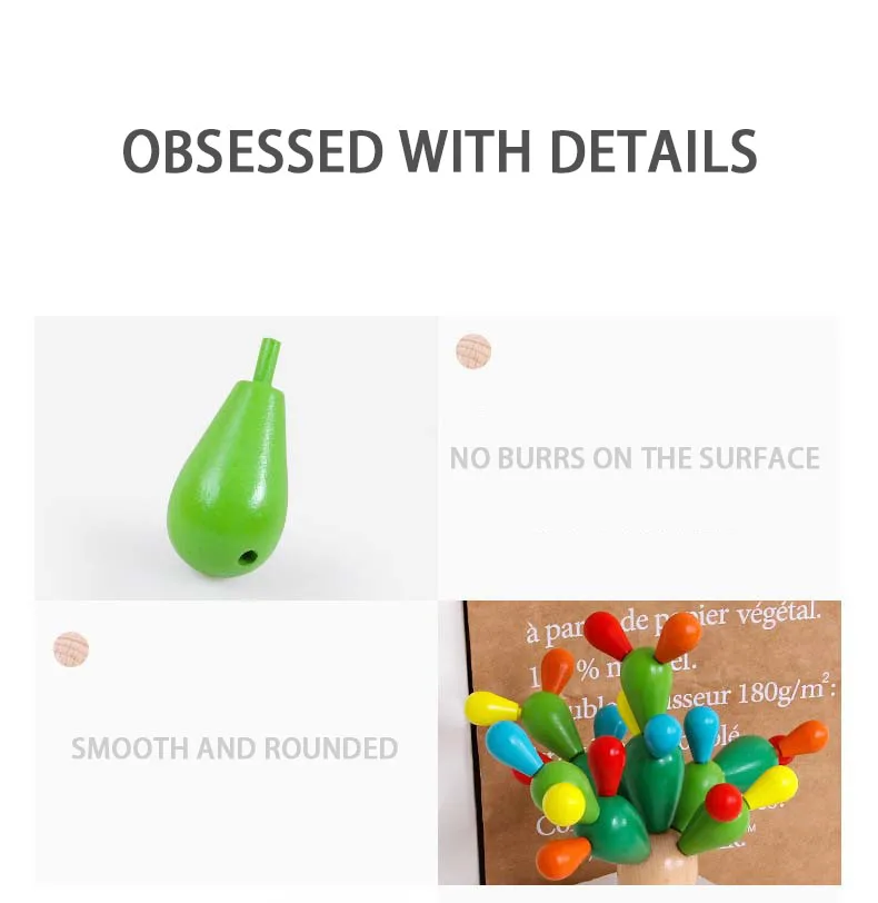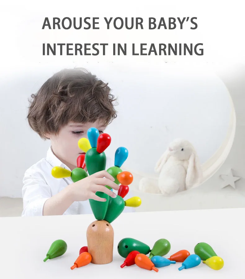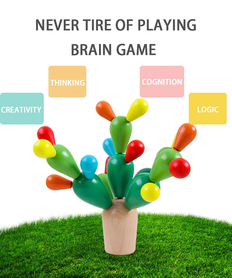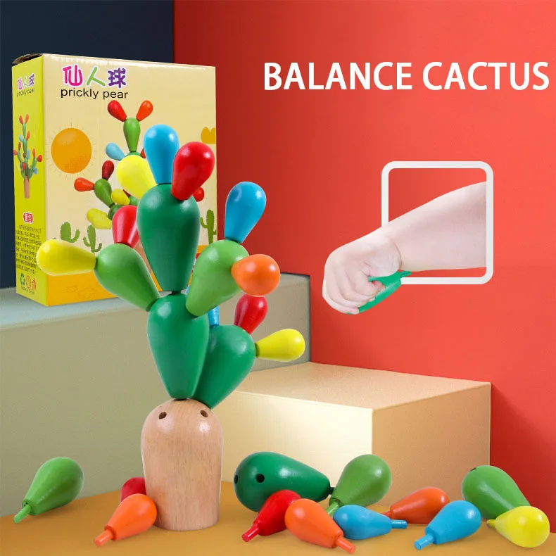 Children'S Wooden Cactus Building Block Toy Montessori Benefit Wisdom Toy Multi-Functional Assembling Boy and Girl Toy Gift